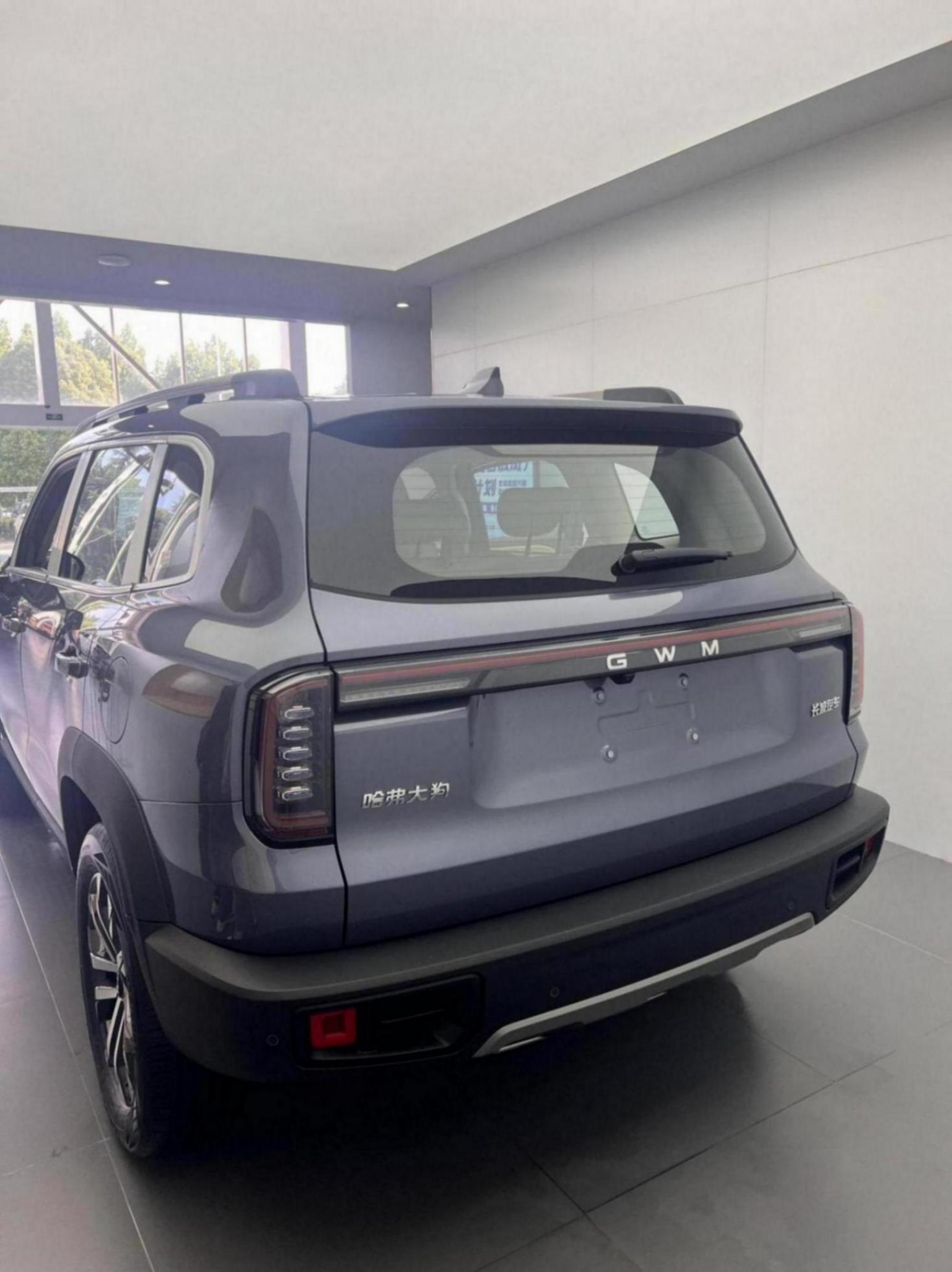 車身側面基本保持不變,“方盒子”造型配合前后隆起的分段式腰線、粗壯的熏黑輪眉,顯得很有肌肉感,并繼續提供車頂行李架,以及18/19英寸兩種造型的輪轂可選。尾部突出的熏黑保險杠加之三孔式銀色護板,與前臉相呼應,“天際之光”貫穿式尾燈也沒有缺席,不過中間將改為“GWM”標識。同時不難發現,除灰色、黑色外,26款哈弗大狗還將新增與哈弗猛龍類似的“苔巖綠”配色。
