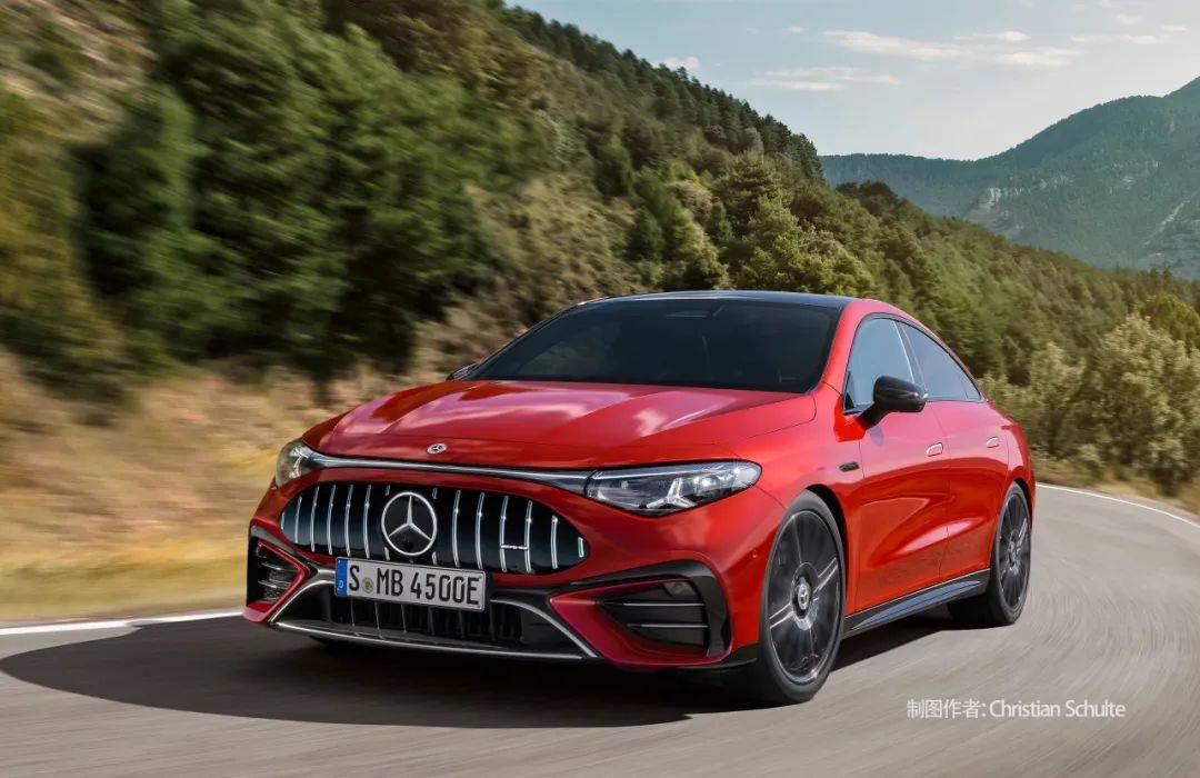 上周我們在紐堡北環附近拍攝到了一輛純電版AMG CLA,那輛測試車并沒有采用高規格的打孔剎車盤和剎車卡鉗,我們因而推斷它是動力稍弱的AMG CLA 35。很快,我們的制圖作者舒爾特就為我們描繪了高配版本的AMG CLA 45。