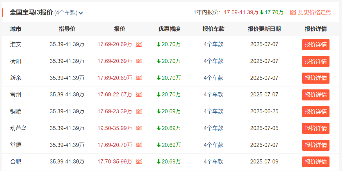 誰能想到,原價35.39-41.39萬元的寶馬i3車系,現如今在部分地區的終端裸車最低價格,居然已經低至16.2萬元起了。