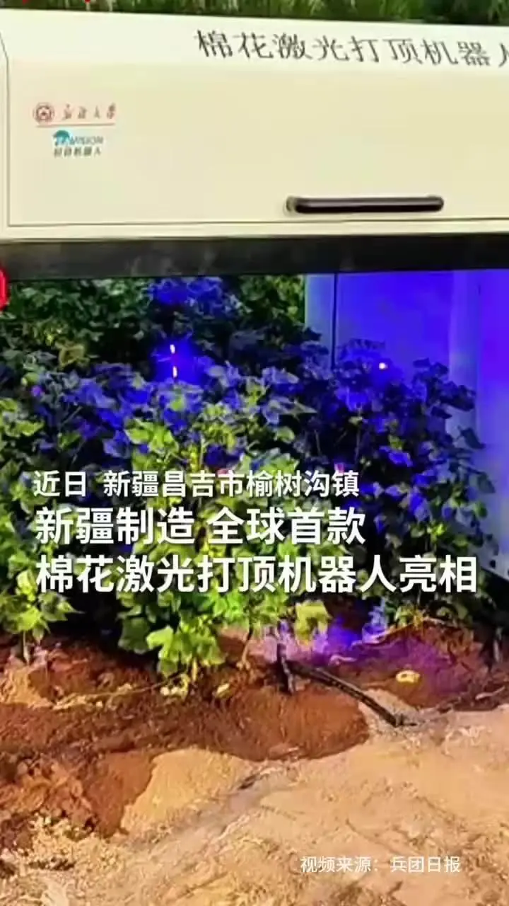 7 月 11 日消息,新疆日?qǐng)?bào)昨日(7 月 10 日)報(bào)道稱,全球首款棉花激光打頂機(jī)器人于 7 月 7 日在昌吉市榆樹溝鎮(zhèn)亮相,棉花頂芽識(shí)別準(zhǔn)確率達(dá) 98.9%,傷苗率小于 3%,作業(yè)效率可達(dá)每小時(shí) 6~8 畝,是人工作業(yè)效率的 10 倍以上。