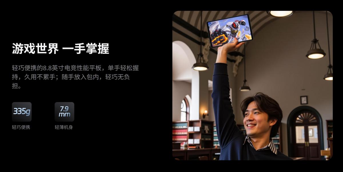 7.9mm的纖薄機身,金屬背板經過陽極氧化處理帶來細膩觸感。335g 的重量控制優于多數同類產品。支持 TF 卡擴展的設計深諳用戶實際需求,最高可實現 1.25TB 的存儲容量,為影視資源與游戲安裝包留足空間。