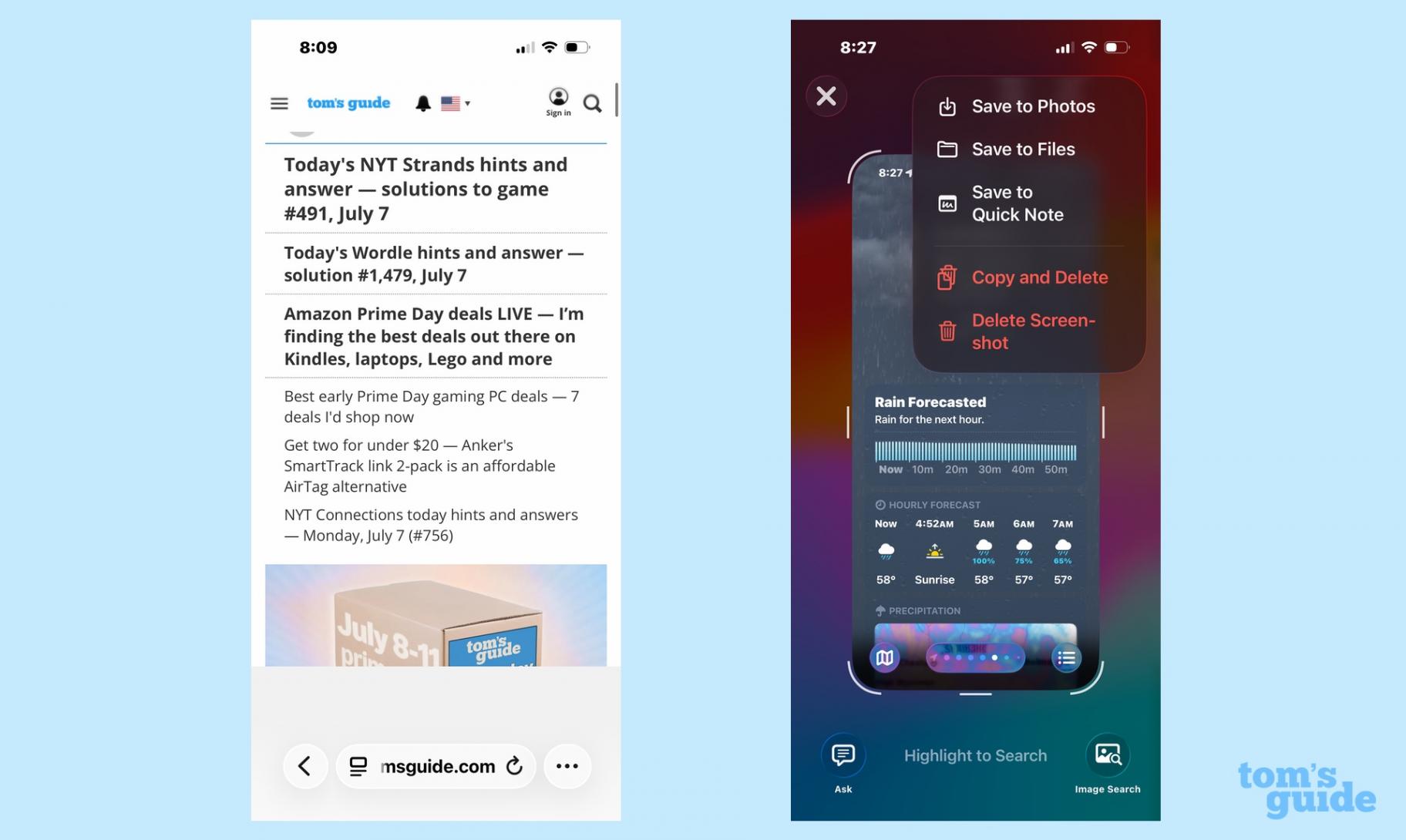 iOS 26 中的 Safari(左)和 Visual Intelligence 屏幕截圖(右)(圖片來(lái)源:Future)