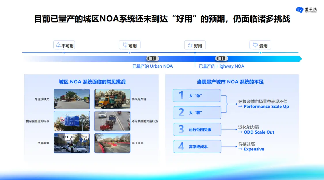 陳黎明表示,目前高速 NOA 已經到達一個好用的階段,但是城區 NOA 現在目前只是一個可用階段,離好用還有一定的距離。