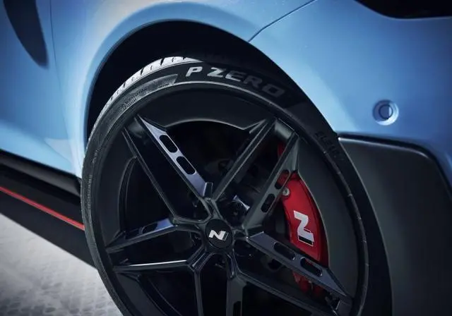 IONIQ 6 N 采用專為此車開發的 Pirelli P-Zero 5 高性能胎款,胎緣上方具備 HN 專屬標記,輪胎尺碼為 275/35R20,并搭配前四活塞搭配后單活塞卡鉗,以及前 400 mm、 后 360 mm 碟盤設定。