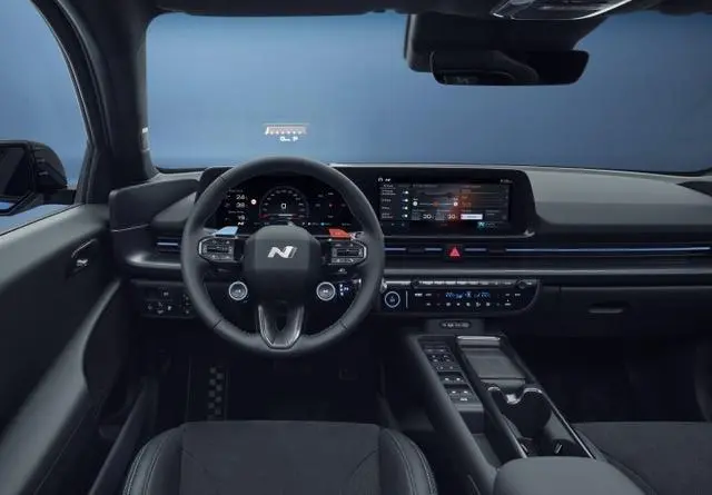 IONIQ 6 N 內飾采用 IONIQ 5 N 相同的多功三輻式專屬方向盤設定,并擁有雙前座賽車座椅配置,具備抬頭顯示器及專屬儀表顯式界面。