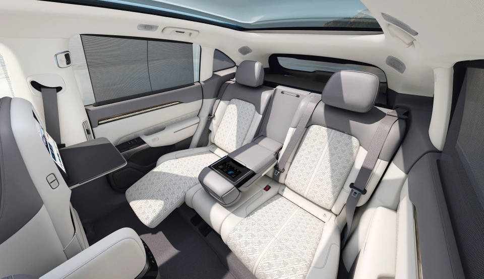 當然如果想要更加舒適,極氪7X除了前后排座椅電調以及通風加熱按摩這些舒適配置外,還能給你電調腿托、主駕頭枕音響、全景天幕電動遮陽簾,甚至還能在副駕后排裝13英寸的娛樂屏,雖然以上這些都需要選裝,但相比G7,極氪7X擁有更大的舒適潛力,尤其是電動遮陽簾,夏天暴曬的情況下,沒有什么比物理防曬好用的。