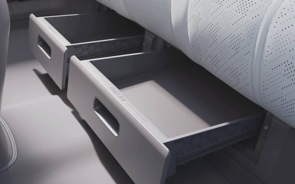 除了坐得舒適外,儲物也很重要,小鵬G7的前備廂自帶排水孔,下雨放雨傘放些冰鮮的東西進去,回去水一沖相當方便,車內也設置了小掛鉤,相當的人性化,而極氪7X在后排座椅下方也設置了兩個儲物抽屜,同樣便利。
