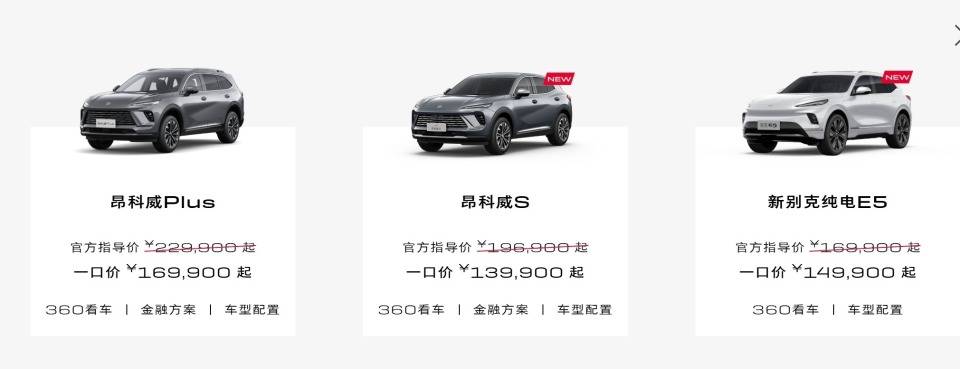 雖說大部份一口價取消,但在一些品牌的官網上,依舊明確表示有一口價。比如上汽通用別克的昂科威plus、昂科威S、君威、君越、GL8系列,凱迪拉克XT4/5/6、CT5以及名爵MG7,都分別在各家的官方上打出限時一口價的標簽。