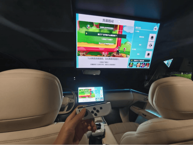 這塊屏不僅能夠簡單的看視頻,還能秒變游戲座艙,車內會有220V電源,鏈接車內的DP接口,在游戲中心APP投屏就可以了,這樣大男孩就可以在車上玩Switch和PS5的游戲了,畢竟有時候男人大了,自己在家里打游戲會影響到孩子做作業的,對吧,懂的都懂這個時刻的。當然孩子做完作業了跟孩子一起玩也不是不行。
