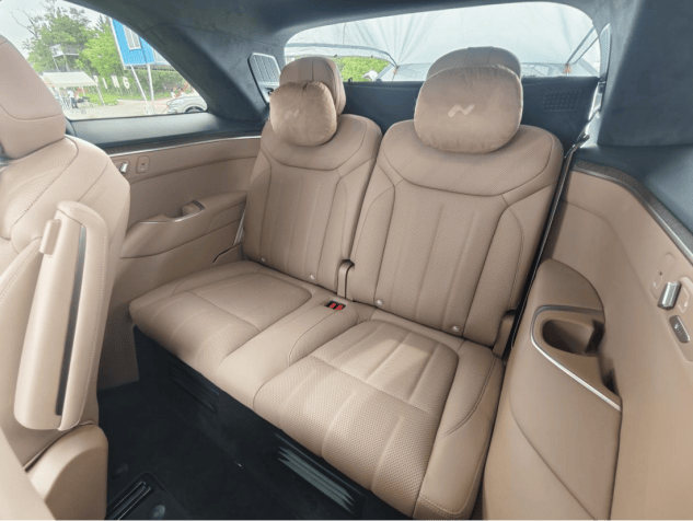三排最大調節角度為38度,座椅不會很薄,而且承托力度相當足,而且杯架以及充電口都給到了,還有一個座椅加熱功能。