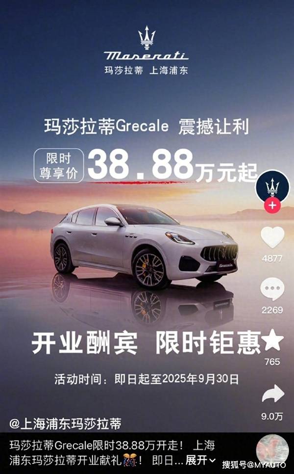 要知道,這還不是瑪莎拉蒂的極限,據說有些地方Grecale的終端售價直接來到了36.96萬元,說是腰斬也一點都不過分。
