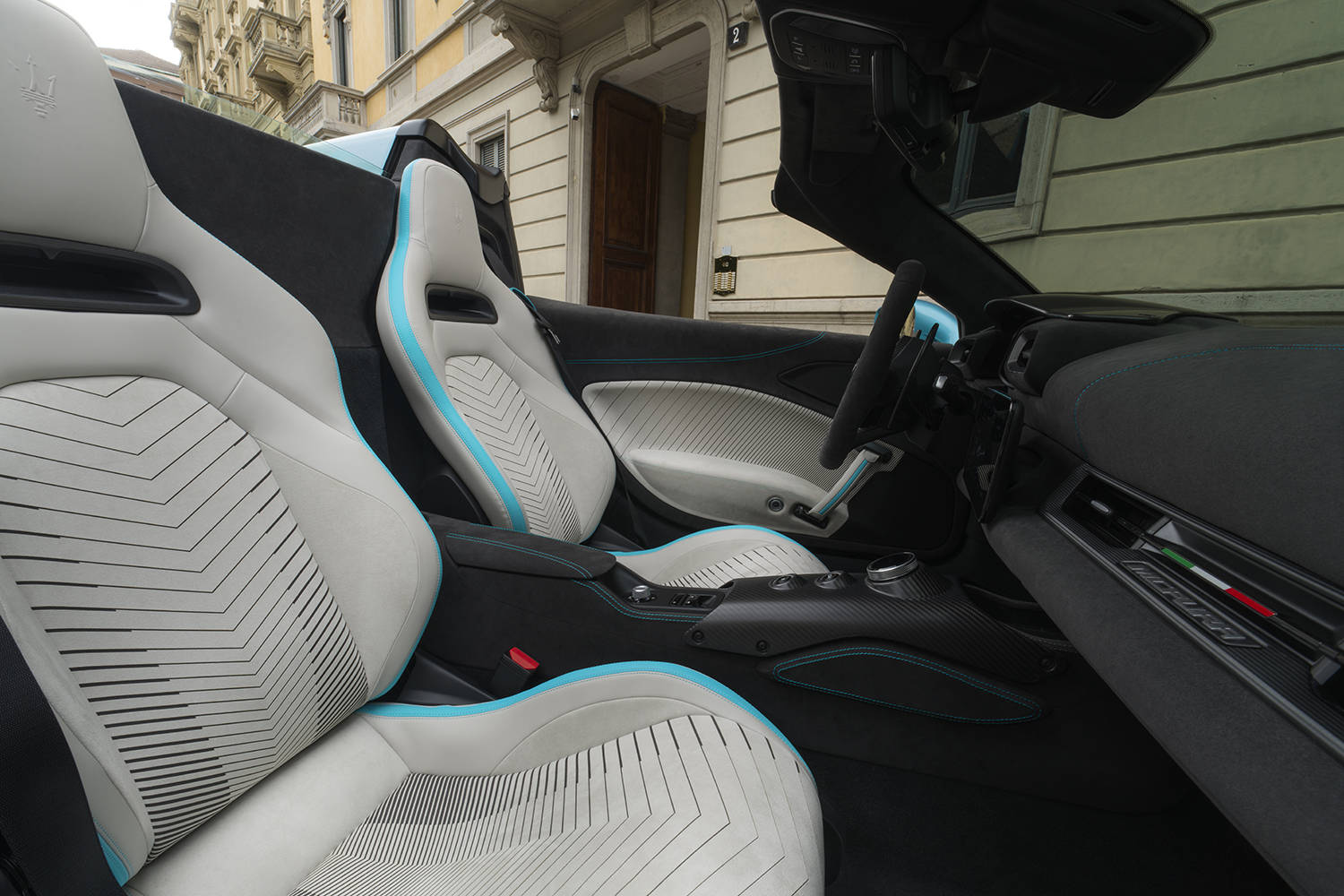 車尾擴散器的造型依舊夸張,中置排氣、后窗的散熱口強化了這款車不凡的動力儲備。瑪莎拉蒂著重關(guān)注比例平衡。下部線條更加犀利、簡潔。極具美學個性的設(shè)計皆有特定目的。新車配色除神秘灰、隱秘灰、純粹黑、冰川皓白、無界曜藍、烈焰紅、絕塵黃、皇家綠及靈動黑外,新增配色魔力橙。