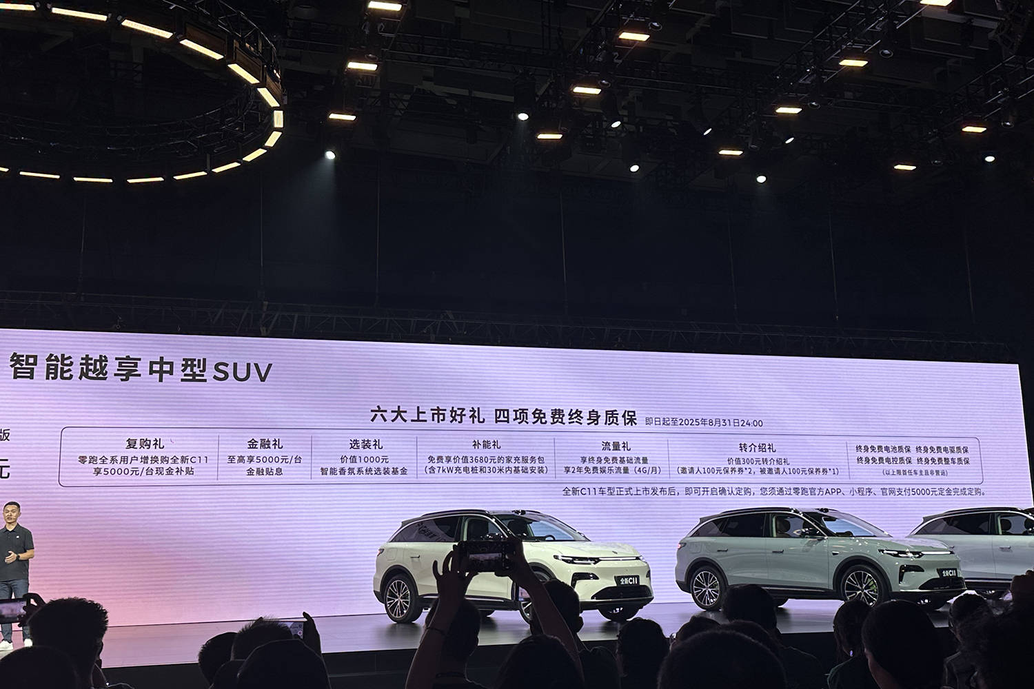 除此之外,零跑官方還提供6大上市權益(復購、金融、選裝、充電、流量、轉介紹)和4項免費終身質保(整車及三電),具體見下圖: