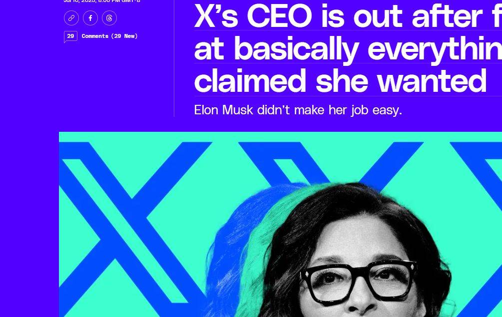 7月11日,據(jù)外媒報(bào)道,馬斯克旗下X平臺(tái)首席執(zhí)行官琳達(dá)·亞卡里諾宣布辭職,外媒指出,她留下的X平臺(tái)狀況比接手時(shí)更糟。