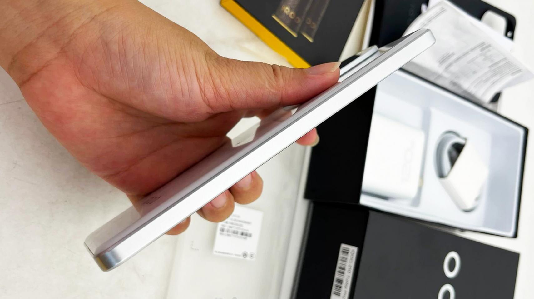 經(jīng)典旗艦機(jī)舷窗造型普及到千元機(jī)。拆包裝取真機(jī),Z10TurboPro的包裝與標(biāo)準(zhǔn)版的盒子一樣,甚至連外形都保持一致,不拿起來掂量手感無法區(qū)分。小編這次的真機(jī)還是二手產(chǎn)品,九五新,白色版本,成色很好。白色版是主打復(fù)合材料制作的后蓋,亮面白效果,中框則是塑膠,做成了金屬銀的質(zhì)感(燃配色的中框與后蓋顏色保持一致)。機(jī)身較為輕薄,206克重量與8.09mm的手感,戴上保護(hù)殼也不壓手,且后置的鏡頭模組與自家數(shù)字旗艦的鏡頭模組一樣,稱之為萬里舷窗設(shè)計(jì),很有辨識度。