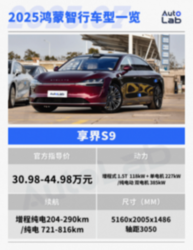 享界是與北汽藍谷合作的品牌,目前只有享界S9一款車。