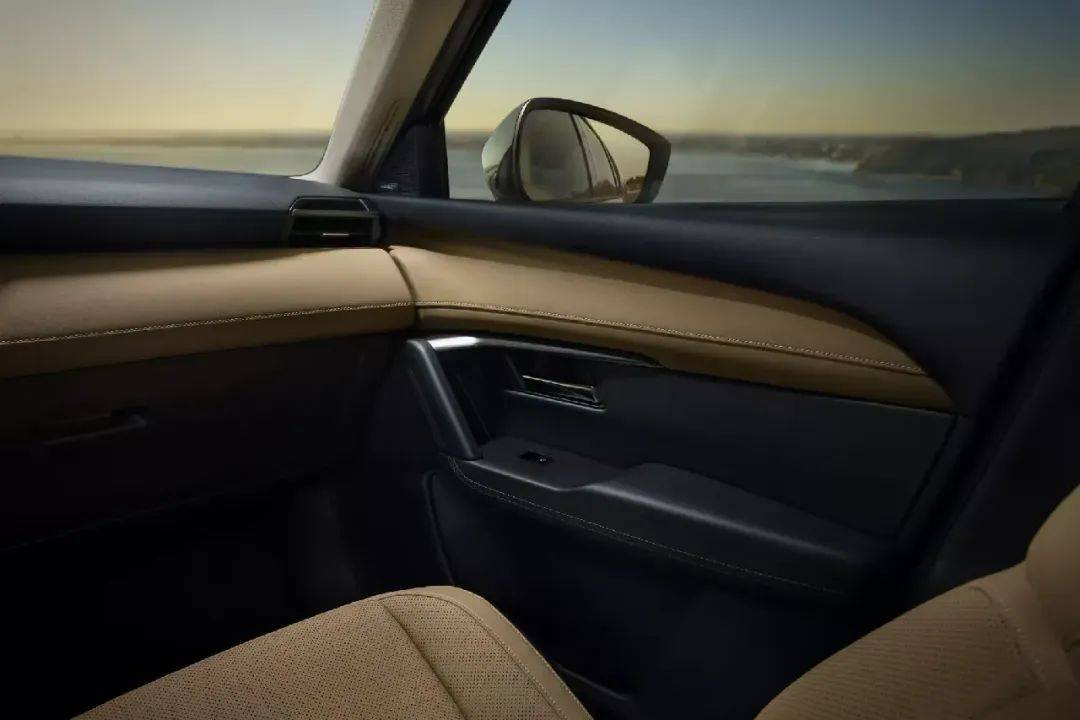 側(cè)面來看,肩線更為銳利,后門尺寸有所增加,便于后排乘客上下車。此外還有造型獨特的側(cè)裙和更具張力的車身線條。
