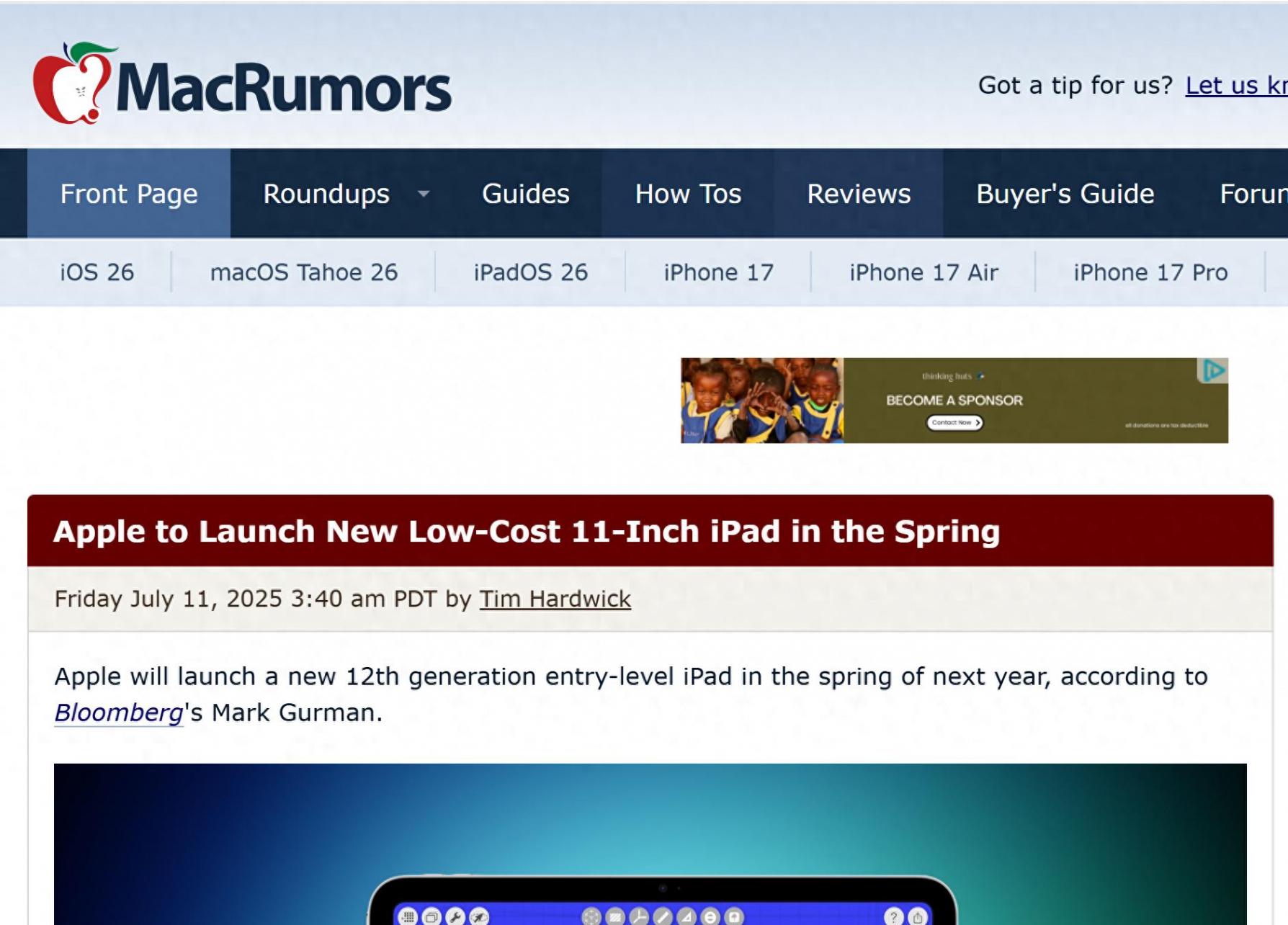 按照計劃,蘋果第 12 代入門級 iPad 有望在 2026 年 3 月或 4 月正式推出。