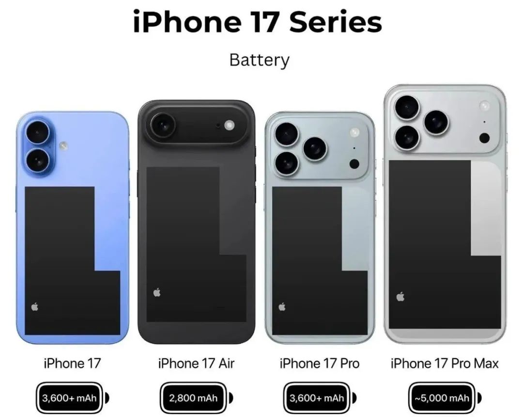 2、性能組合:iPhone 17 Pro系列采用A19 Pro芯片+12GB內(nèi)存的組合,iPhone 17 Air采用A19芯片+12GB內(nèi)存的組合,iPhone 17則是8GB的內(nèi)存,處理器有說A19芯片,也有說繼續(xù)采用A18芯片,但不管怎么說,8GB的內(nèi)存就已經(jīng)是大刀了。