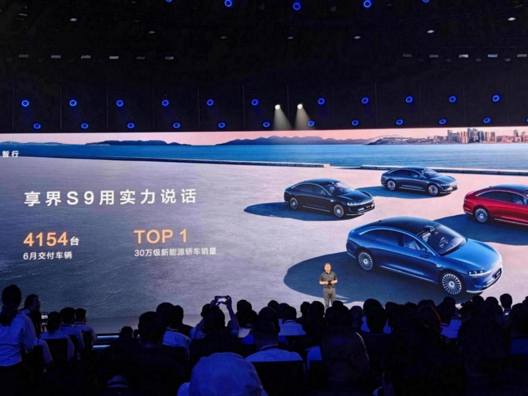 除了車標之外,這次北汽和鴻蒙智行更想強調的一個數字是“4154輛”。享界S9在6月交付了4154輛、連續穩居30萬元以上新能源轎車銷量榜首,即便在豪華中大型車市場也僅次于56E,是中國品牌首次達到這一高度。