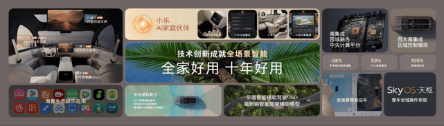 智能座艙面向未來: 搭載了最新的Coconut椰子2智能系統,樂道稱之為“面向未來10年的AI旗艦智能系統”。四屏交互(35英寸AR-HUD、17.2英寸中控屏等)覆蓋三排,新的AI助手“小樂”支持0.3秒喚醒和超1630項語音技能。在屏幕交互覆蓋范圍和語音能力廣度上,相較理想L8和小鵬G9的現有系統,樂道L90的智能化體驗有其獨特性和前瞻性。