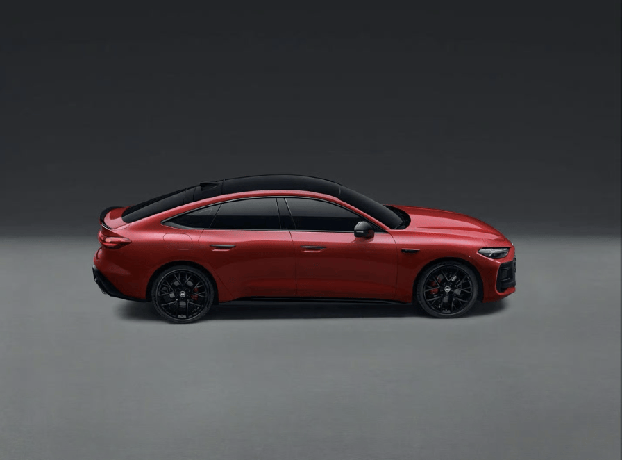 再加一萬元,來到30萬元的首發限量款。這個版本可以直接理解為“尊享運動版”,因為它只是在尊享版的基礎上加了一些運動化的套件:比如限定紅/灰色車色、熏黑尾翼、20英寸熏黑輪轂、超纖維頂棚、紅色安全帶、內飾紅色縫線、碳纖維飾板等。但是取消了座椅的通風按摩。