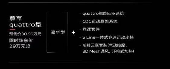 最后就是32萬元的智領quattro型。顧名思義,就是同時含有華為智駕以及quattro四驅系統、CDC運動懸架。