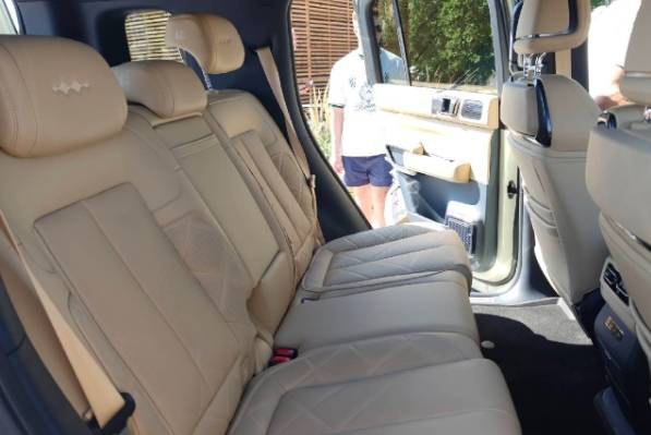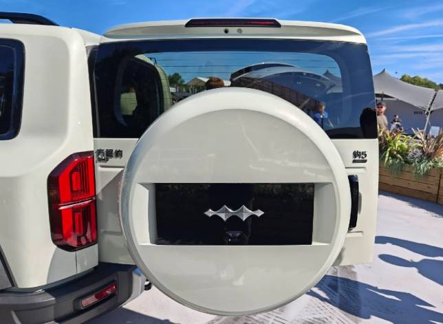 騰勢B5在設(shè)計上與國內(nèi)在售的老款豹5保持一致,前后包圍配有大面積銀色裝飾件及拖車鉤,應(yīng)用環(huán)形LED日行燈,車身側(cè)面配備方形外后視鏡、傳統(tǒng)造型門把手、黑色輪眉等,還配備黑色多輻輪輞與外掛式備胎,并提供拖掛資質(zhì)。