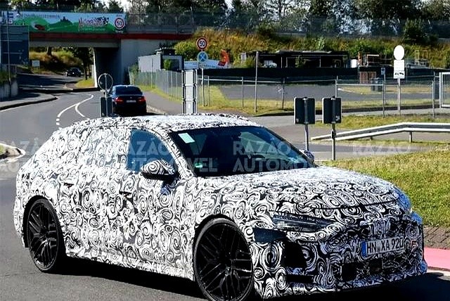 7月西班牙曝光的RS6 Avant路試視頻太詭異,安靜得像電動車,充電口暴露插混身份,網傳V8要變V6。