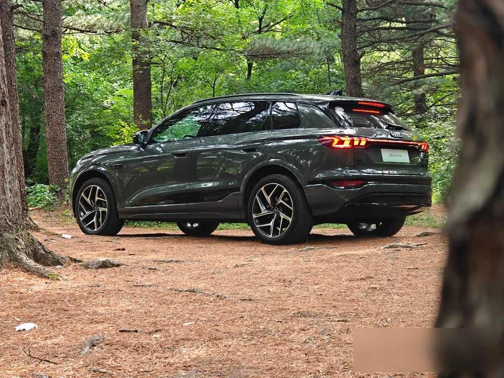 這車尺寸不小,長4米88,軸距接近3米,但開起來感覺不像那么重的車。方向盤轉向挺靈敏,過彎的時候車身穩,懸架調校也不像其他電動車那樣軟綿綿的。奧迪還是挺講究操控的,用了前后五連桿懸架,還有Brembo剎車卡鉗。
