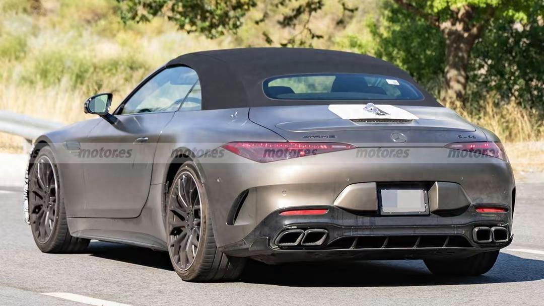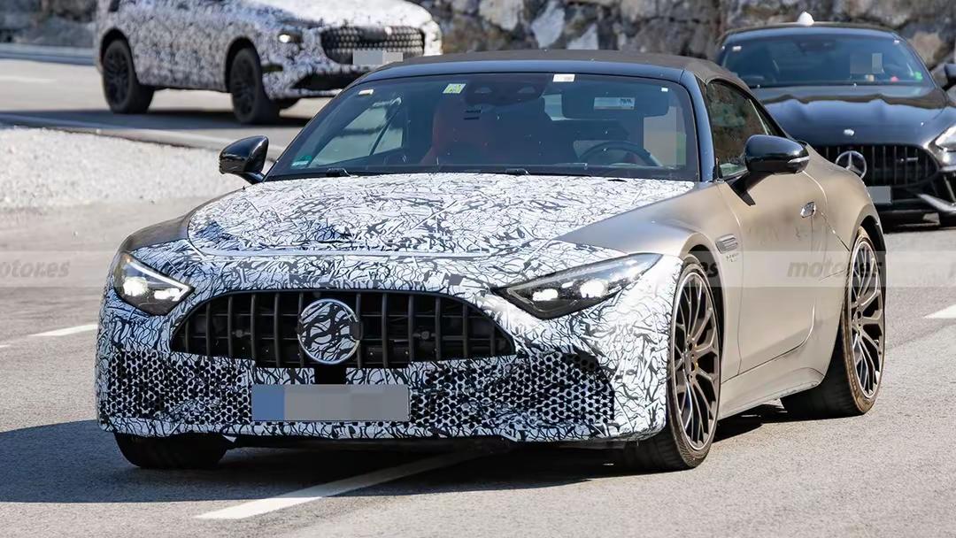 外媒曝光新款梅賽德斯-AMG SL測試車,僅車頭做了偽裝覆蓋,預計會對前包圍、機艙蓋等區域進行調整,整體設計風格與現款保持一致。前臉的直瀑式進氣格柵做了黑化處理,尤為經典。另外黑色多幅式輪轂和黃色剎車卡鉗的配置,讓整臺車看起來更加運動時尚。