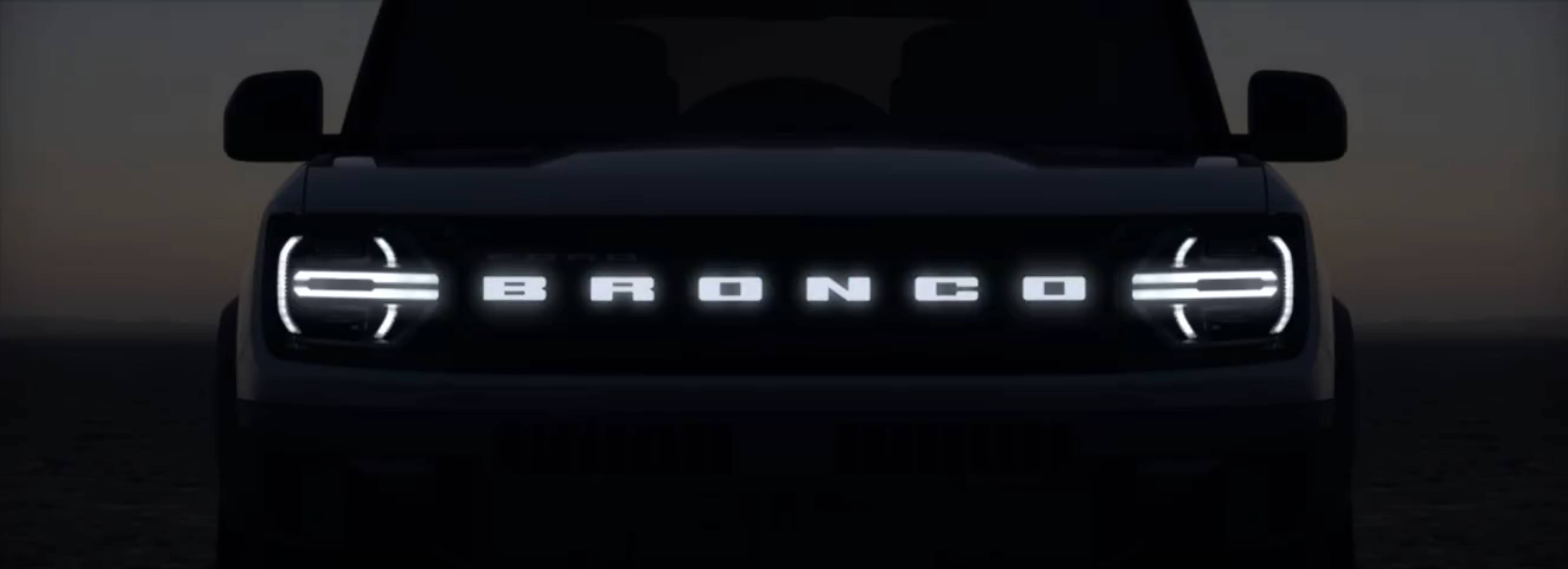 從預告視頻中可以看出,福特烈馬新能源車頭方正,繼續沿用現款車型的方盒子設計語言,在中網部分采用了發光的BRONCO英文標識,日行燈部分依然采用經典的圓形+橫杠的設計,圓形燈環從中間斷開,形成括號樣式,一字型燈帶在內部發光部分從中間一分為二,細節方面有所改變,在整體點亮后辨識度極高。