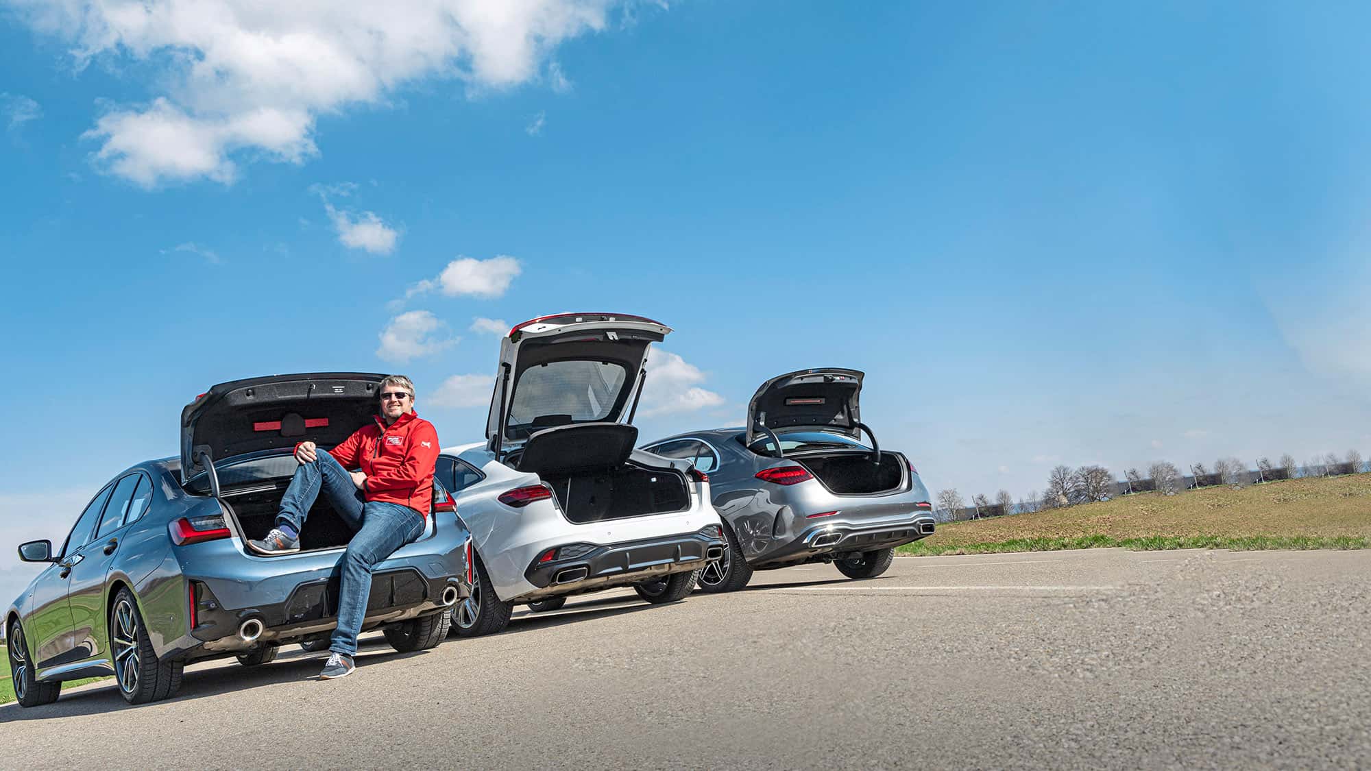 盡管如此,在紙面上的裝載能力方面,奔馳和寶馬的行李廂容積更大。三款車的后排座椅均可按比例放倒——不過奧迪的座椅無法通過遙控方式釋放。盡管如此,A5 的掀背式設計在裝載大件物品時優勢明顯。