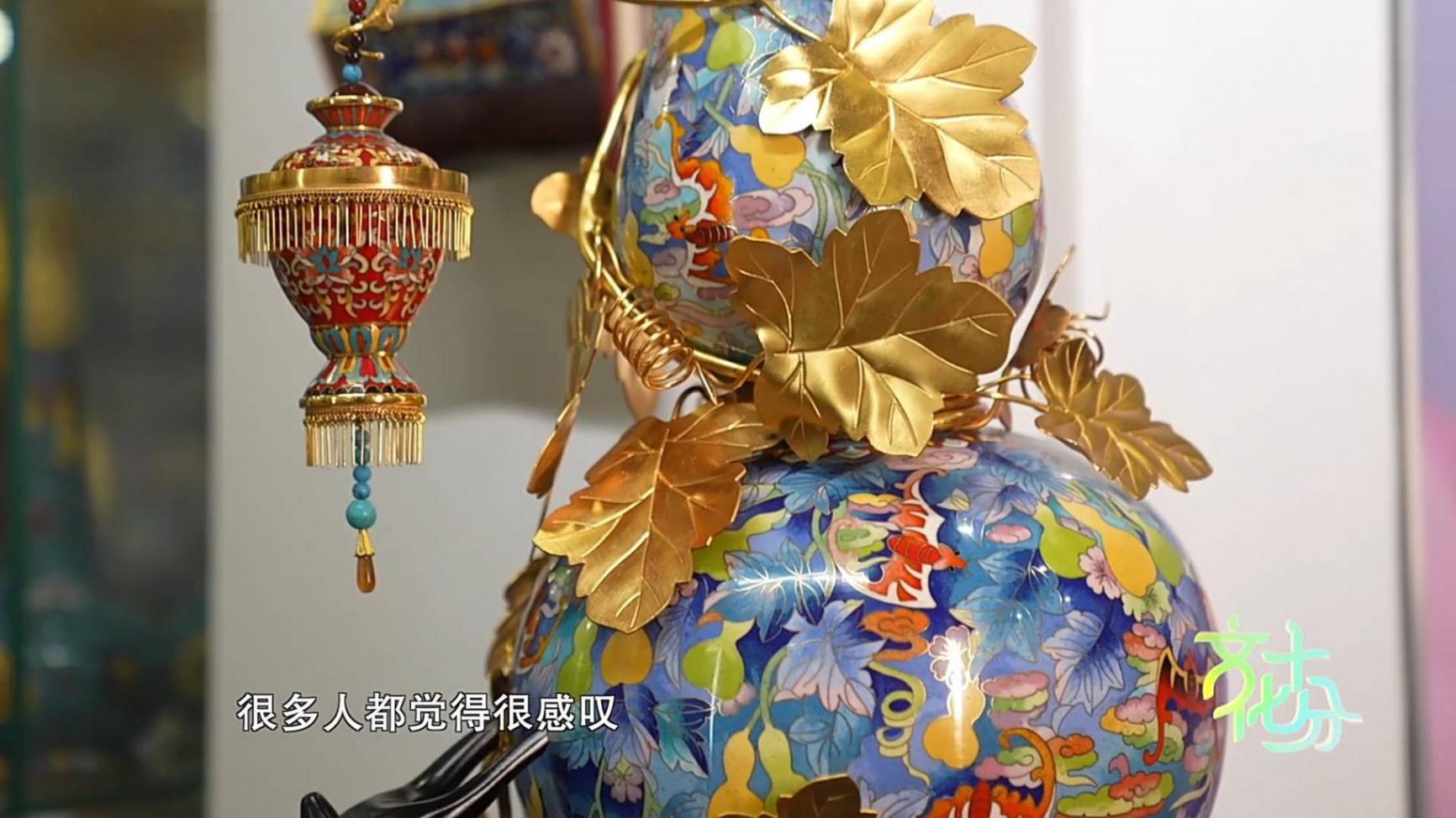 北京市工藝美術大師 高級工藝美術師 張旭:這次咱們跟著總臺來到意大利,我也想讓咱們的非遺景泰藍,用獨特的創新的造型到世界上去展示,也讓大家對咱們中國的傳統藝術流連忘返。我們的父親也是我的師傅張同祿,他就是從接觸景泰藍開始對產品有著創新,不同的造型、不同的紋樣都可以轉換成時代的風采。比如說《宮燈葫蘆》這件作品拿到了意大利,這次展出也受到了現場很多人的關注,后續我們也看到很多不同的宣傳報道,也都是對咱們中國的國粹藝術非常喜愛。