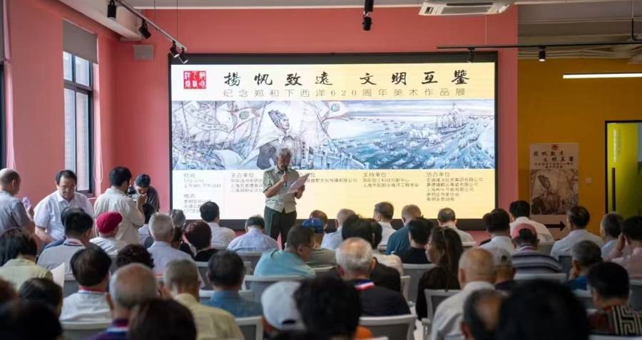 近日,“揚(yáng)帆致遠(yuǎn) 文明互鑒”紀(jì)念鄭和下西洋620周年美術(shù)作品展,在崇明島C77文化創(chuàng)意園隆重開幕。