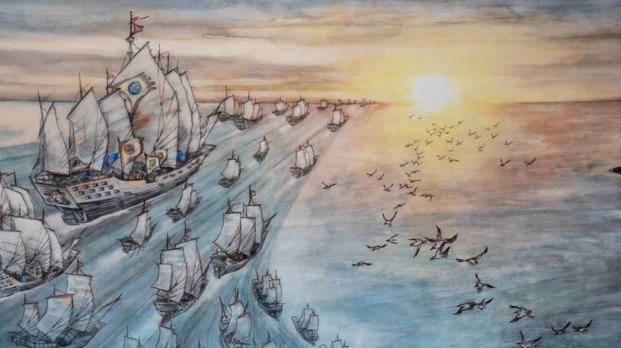 從1405年到1433年,歷時(shí)近三十年,鄭和率領(lǐng)大明王朝超級(jí)船隊(duì),七次下西洋,是中國歷史上最壯觀的海洋探索活動(dòng),也是世界最壯觀的海洋探索活動(dòng)之一,標(biāo)志著明朝時(shí)期對(duì)外交流與貿(mào)易的繁榮,展現(xiàn)了當(dāng)時(shí)中國的海洋技術(shù)、外交能力以及與世界其他地區(qū)的聯(lián)系。