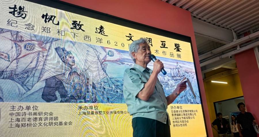 2025年7月11日,是鄭和下西洋620周年,也是中國航海日設(shè)立20周年。當(dāng)天,在上海市崇明區(qū)文化和旅游局支持下,由中國詩書畫研究會(huì)、上海百老德育講師團(tuán)和上海鄭桓公文化研究基金會(huì)聯(lián)合主辦。大展在籌建中的上海崇明鄭和下西洋文化藝術(shù)中心舉行,展期為一個(gè)月。