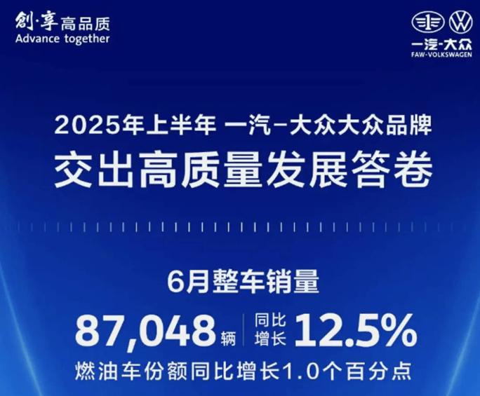 值得注意的是,在“反內卷”紅線明確之后,合資品牌市場呈現明顯回暖趨勢。以往在價格戰中不占優勢的大眾、豐田等主流合資品牌,在6月普遍迎來銷量提升。數據顯示,上汽大眾2025年6月終端銷量為9.6萬輛,同比增長15.1%;一汽-大眾6月銷售16萬輛(含進口車),同比增長15.1%;一汽豐田6月銷量7.2萬臺,同比增長14%,實現連續正增長。