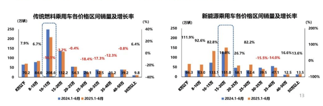 值得一提的是,新能源汽車市場(chǎng)結(jié)構(gòu)的變化帶動(dòng)了消費(fèi)升級(jí)。相較于傳統(tǒng)燃油乘用車10萬(wàn)-15萬(wàn)價(jià)格區(qū)間的主流市場(chǎng),新能源乘用車銷量主要集中在15萬(wàn)-20萬(wàn)價(jià)格區(qū)間,累計(jì)銷量151萬(wàn)輛,同比增長(zhǎng)16.8%。
