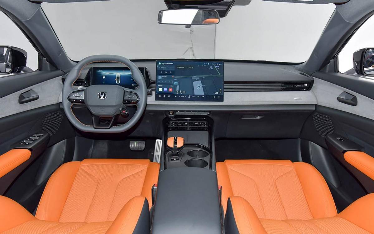 動力提供純電和增程兩種版本,其中純電版車型最大功率分別為120千瓦和210千瓦。底盤采用前雙叉臂+后五連桿獨立懸架系統,搭載800V高壓SiC碳化硅平臺,相較以往長安車型,整車性能更強、充電速度更快、能耗水平也更低。