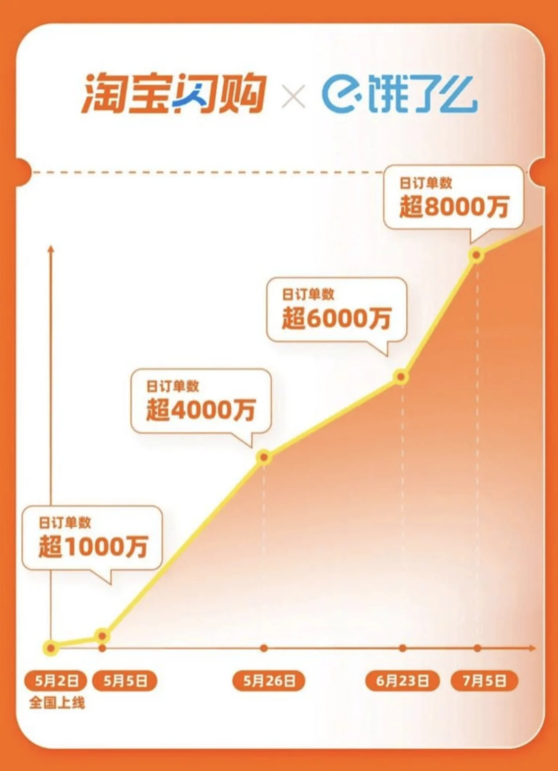 重金投入,立竿見(jiàn)影。3日后的7月5日,淘寶閃購(gòu)日訂單數(shù)破8000 萬(wàn)單。