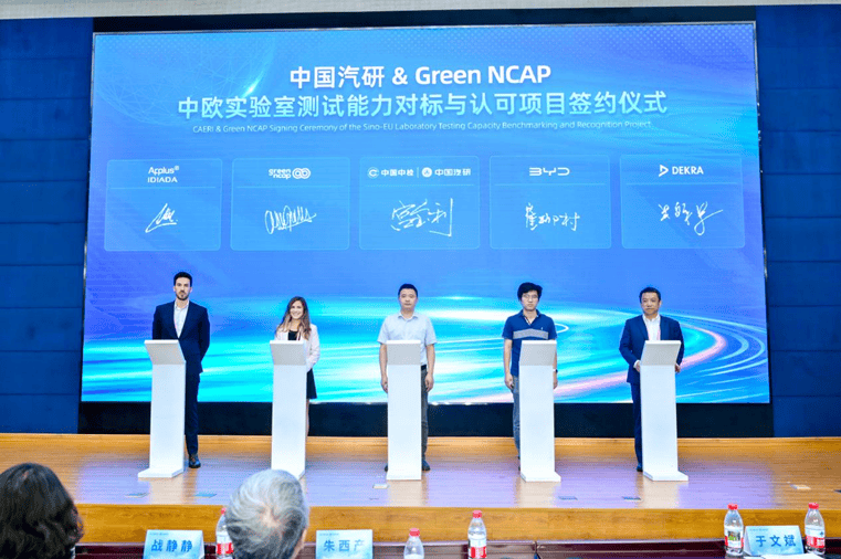 會上,中國汽研與Green NCAP 聯合比亞迪、APPLUS IDIADA、DEKRA五家單位簽署中歐實驗室測試能力對標與認可項目,標志雙方在新能源汽車綠色、低碳、健康測評領域深度合作落地。合作將助力中國新能源汽車更好地適應歐盟環保需求,為出口歐洲,減少綠色技術貿易壁壘提供支持。