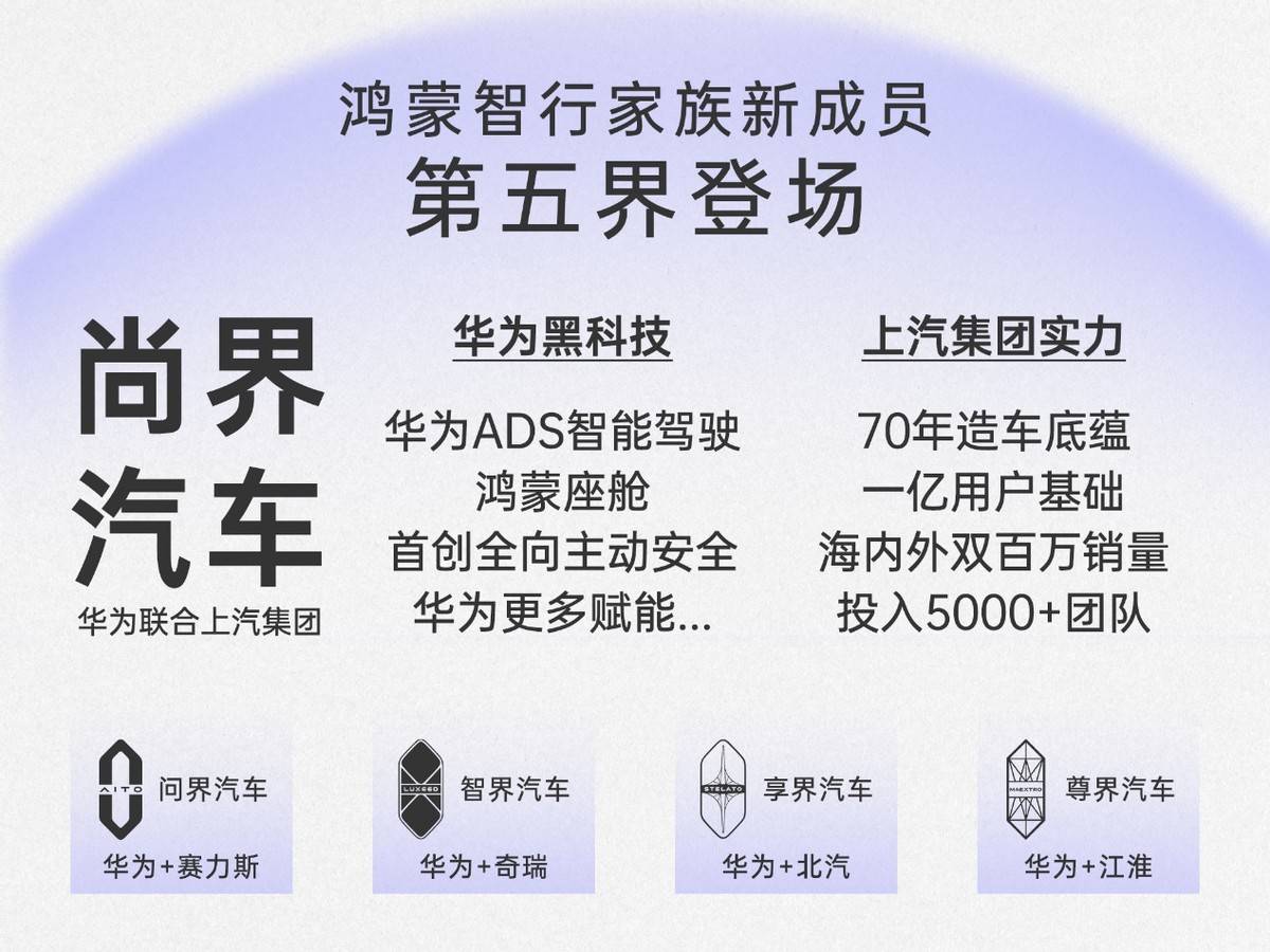 7月11日,鴻蒙智行全新成員——上汽集團與華為聯合打造的尚界品牌,正式放出首款車型預告圖,并宣告“今秋上場”。至此,繼問界、智界、享界、尊界之后,“界字輩”迎來第五位玩家。