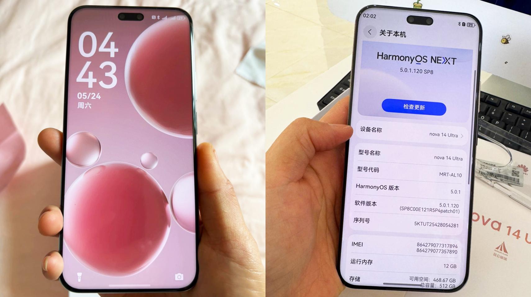 等深曲面屏幕顯示清晰。拆包裝取真機,Nova14ultra的觀感繼續和前代保持一致性,大號的屏幕更大,并且機身寬度更寬,導致單手握持還不那么容易上手。機身正面屏幕上,Nova14ultra用的是等深微曲面,其實更加接近n年前流行的2.5d弧面屏效果,體驗其實并不好。在小編看來,不好的原因在于這類屏幕會直接抬升顯示模組的厚度(有點像LCD屏幕封裝技術的大黑邊),嚴重提升了磕碰的概率,再者,也不容易張貼鋼化膜。好在Nova14ultra的這個屏幕顯示還不錯,雖然也是1.5k的分辨率,但在黑色壁紙襯托下,極其細膩通透。