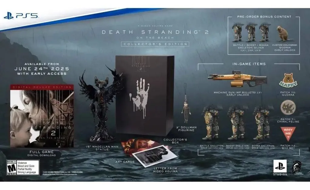 《死亡擱淺 2》的典藏版被大量玩家口誅筆伐也不奇怪了。這個套裝內游戲實體周邊本身就很少,更多都是游戲內的數字內容,還少了最重要的一個東西:內含游戲的光盤,取而代之的是一張下載碼,收藏的那種儀式感瞬間蕩然無存。
