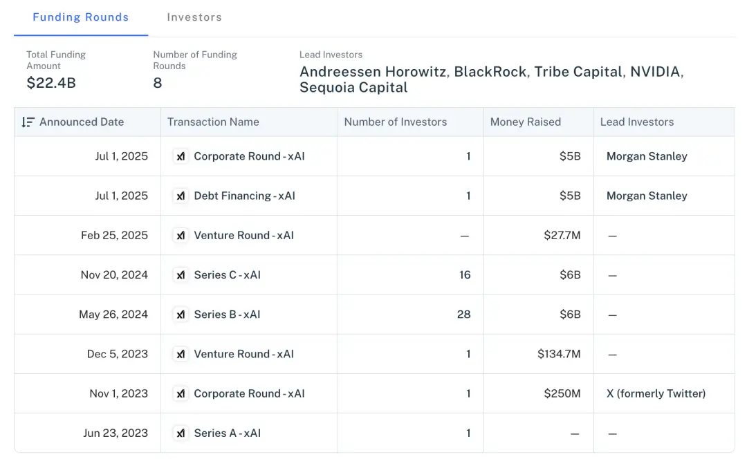 在此之前,xAI就籌集了100億美元,其中債務和股權各占一半。