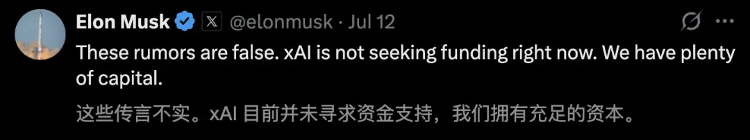 對此,馬斯克本人進行了否認,「我們有充足的資金,并未尋求新一輪融資」。