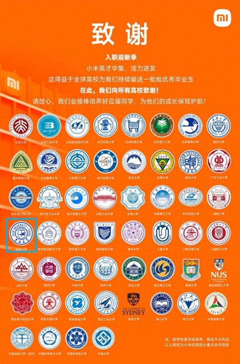 小米公司去年干了一件事。它公開感謝了52所大學,說謝謝你們給我們送了這么多好學生。吉林大學也在感謝名單上。