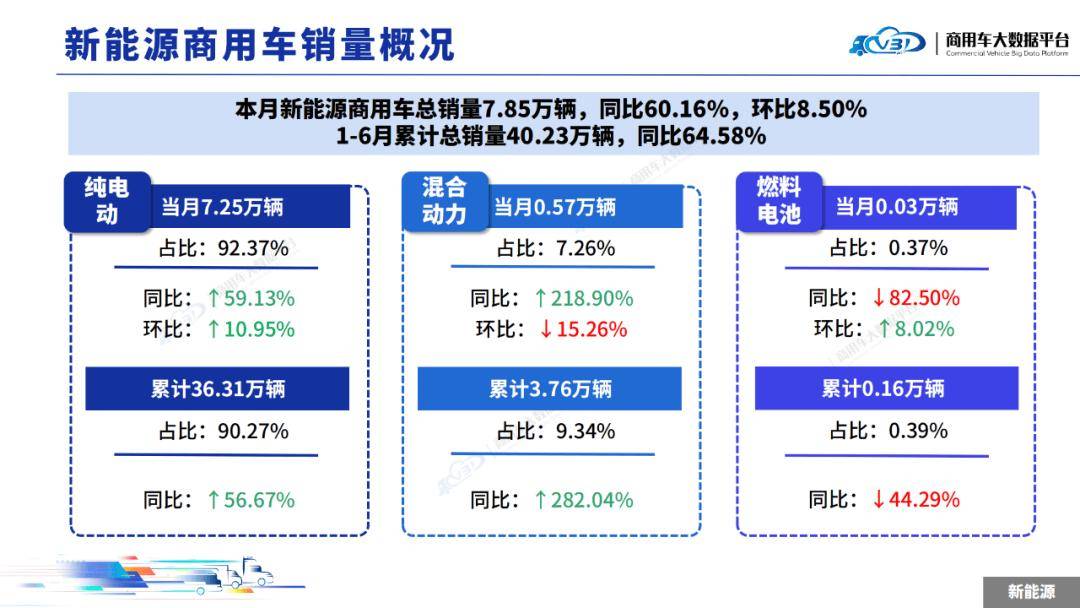 2025年6月新能源商用車銷量(批發(fā))為7.85萬輛,同比增長60.16%,環(huán)比增長8.5%。1-6月累計(jì)總銷量(批發(fā))為40.23萬輛,同比增長64.58%。