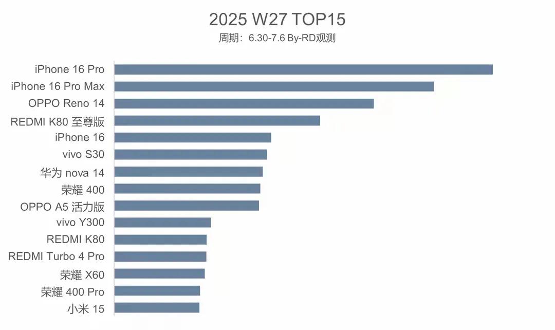 截至2025年7月,從市場監測機構及電商平臺統計數據顯示,智能手機銷量排行榜TOP15(主流品牌合計、型號為主)、紅米K80至尊版排名第四,這一表現說明國產品牌在中高端市場的競爭力持續增強。同時,榜單的第一名基本如行業內預期,品牌和產品力都極為扎實。